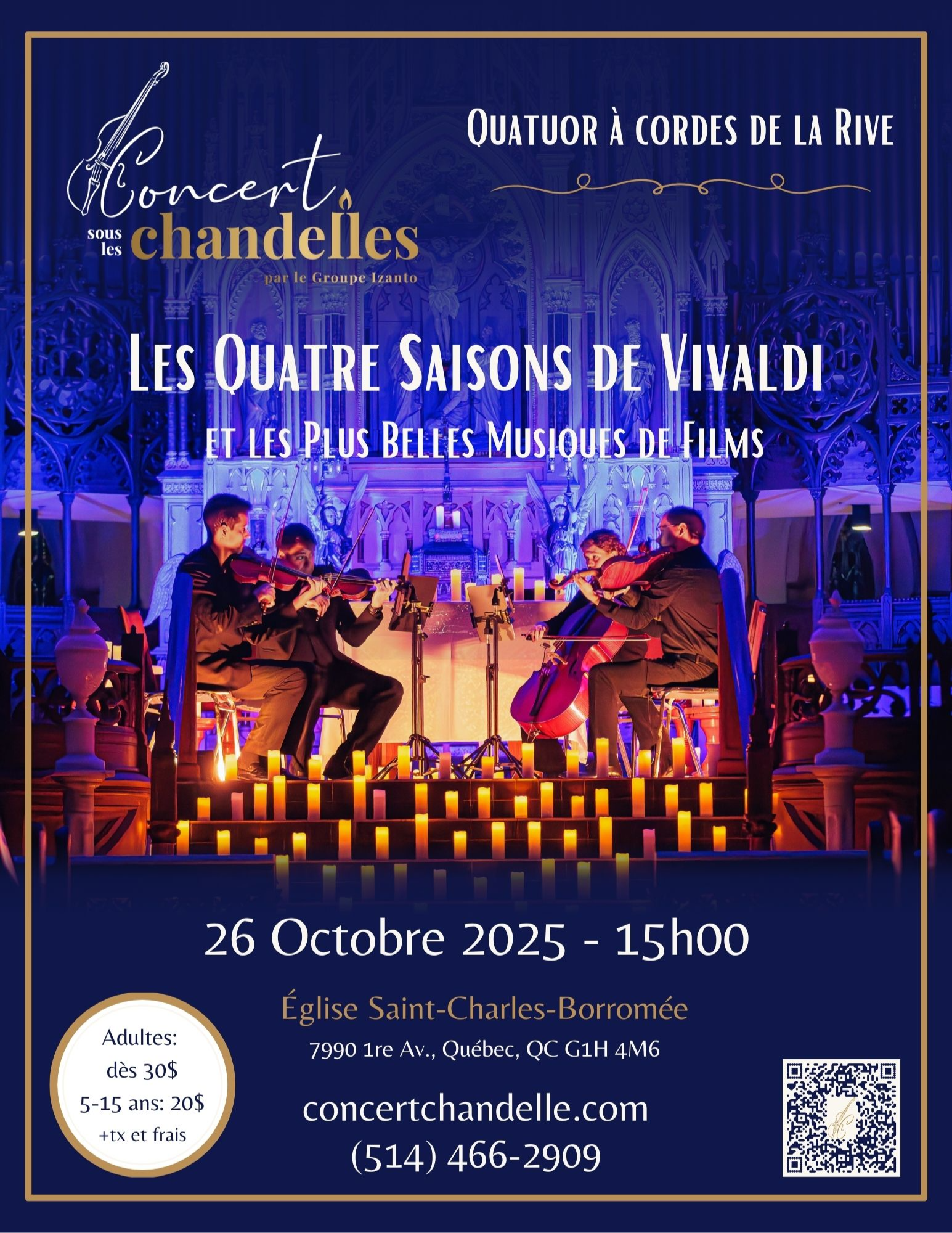 Billets en vente surhttps://www.ticketor.com/concertchandelles/tickets/qu-bec-charlesbourg-vivaldi-les-quatre-saisons-les-plus-belles-musiques-de-films-329720#buy.